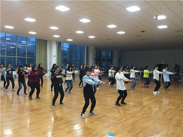 在前期近一个月的赛前练习中,在动作的熟练程度、相邻动作之间的衔接等方面,同学们的表现可圈可点。作为运动会预赛之前的最后一次预热,本次集中训练,主要以队列动作的整齐程度为主要练习内容。训练伊始,同学们首先练习了两次太极拳全套动作。随后,在员工会学习部部员的指导下,大家对左、右下势独立、转身搬拦捶等几个要求较高的动作进行了重复练习,其间偶尔穿插了对个别动作的精细调整。训练的最后二十分钟时间里,同学们统一换上了太极拳比赛服装,将比赛时从入场到退场的整体流程熟悉了几遍,真正做到了赛前全面而又充分的准备。