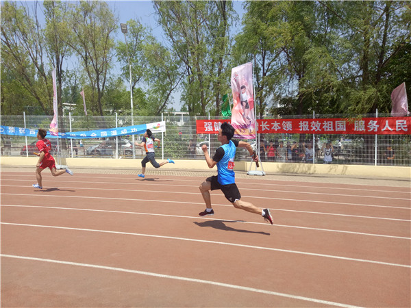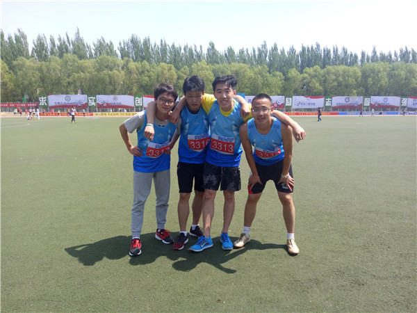 5月18日上午10:40,公司第56届运动会男子4x100接力赛预赛在中心校区田径场正式拉开帷幕。2015级员工王兆丰和2016级员工于楚洋、何双双、彭曹帅四名同学组成一支队伍,代表太阳成集团tyc9728参加了比赛。