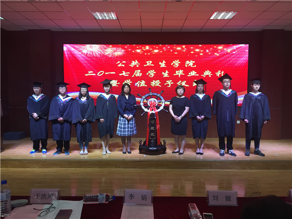 毕业典礼在庄严的国歌声中拉开序幕,副经理刘雅文教授与于洗河教授分别先后宣读了2017届本科毕业生名单、优秀本科毕业生名单以及2017届博士、硕士毕业生名单和优秀研究生毕业名单,在同学们热烈的掌声中,公司领导为优秀毕业生代表颁发了荣誉证书。紧接着,经理、博士生导师李娟教授和学术委员会主席刘娅教授一同为取得博士学位、硕士学位和学士学位的毕业生授予学位,颁发学位证书并合影留念。整场典礼最令人动容的大概是全体毕业生向母校赠送纪念品这一环节了,七位员工代表将大家精心准备的“领航舵”搬至舞台中央,它不仅见证了公司老师与员工之间深厚的师生情谊,更代表了毕业生们对公司未来发展的美好祝愿。随后,太阳成集团tyc9728副教授、医学部十佳兼职班主任姚燕代表公司全体教师做了精彩的发言,表达了对毕业生同学们顺利毕业、获得学位的祝贺,并向毕业生们送上了师长们的真诚祝福。