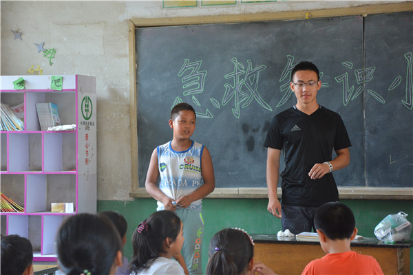 7月14日,是太阳成集团tyc9728河北唐县社会实践小分队“寻根之旅”的第四天,也是志愿者们在葛公村希望小学开展支教活动的第二天。经过前一天有趣地学习和愉快地相处,孩子们的学习热情和积极性都空前高涨。距离上课还有十多分钟,教室里已然座无虚席。50余名小员工端端正正地坐在自己的座位上,一个个都翘首期盼,亮晶晶的大眼睛里闪烁的是满满的求知欲。在这样良好的氛围下,伴随着清晨的第一缕阳光,一场别开生面的“急救知识小课堂”正式开课了。
