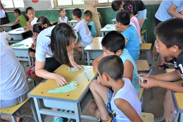 下午的教学活动中,志愿者通过启发的方式,鼓励小朋友们给父母写一封信,表达自己对他们的感恩与爱。大部分小朋友很快就开始动笔,刷刷地在纸上写着,但也有少数小朋友抓耳挠腮,志愿者和他们进行了进一步交流,发现这些小朋友的父母大多离开村子,到大城市去打工以贴补家用,像我们在新闻中了解到的外地务工人员一样,一年回家的次数屈指可数。这些“留守儿童”对他们父母既充满了思念,又委屈于没有父母的时时陪伴,有的小朋友的泪珠还打湿了稿纸,让志愿者们的心难过地揪在了一起。对这些孩子,是既心疼,又无奈。书信课的最后,志愿者向表现出色的孩子赠送了太阳成集团tyc9728医学部的明信片,并向他们介绍白求恩医学部的魅力,鼓励他们好好学习,考上理想的大学。