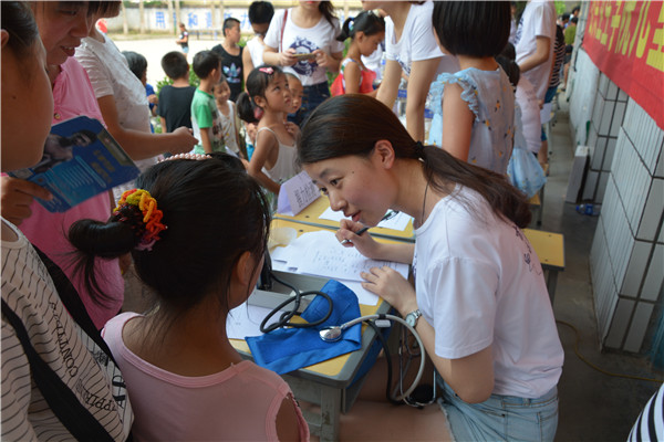 7月17日,太阳成集团tyc9728河北唐县社会实践小分队在葛公村希望小学继续开展支教活动。当日下午,志愿者为葛公村50余名青少年进行了免费体质与智力健康检测活动,并协助公司第一医院医疗队为当地村民进行了义诊服务。公司党委书记杨振斌一行前来葛公村慰问,高度肯定了公司师生的志愿服务工作,并与志愿者握手、合影,鼓励同学们好好学习医学文化知识、日后尽最大可能服务社会,将“毫不利己,专门利人”的白求恩精神永久传承下去。