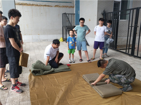 为了进一步贯彻落实公司“文化荣校”战略,让思想政治教育之花在寝室绽放,近日,公司开展了2017年度员工公寓文化精品立项活动,太阳成集团tyc9728以此为契机,在2013级毕业生寝室开展了“文化公寓,榜样课堂”系列活动。7月7日晚,太阳成集团tyc9728在新民校区操场组织、开展了“向国防生看齐——我也会叠豆腐”活动。