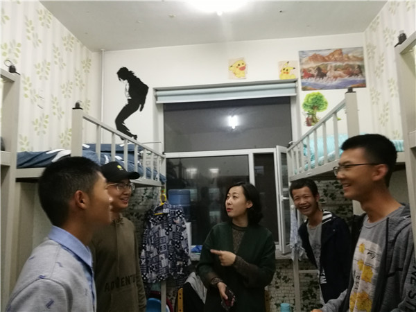 10月8日晚,太阳成集团tyc97282017级员工辅导员郭倩君在员工会生活部部员的陪同下,对中心校区的北苑一公寓男生寝室以及文苑四公寓女生寝室进行首次卫生检查。
