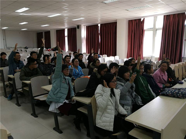 活动始出,全体同学共同观看了十九大特别节目《医者先锋》的三个片段,同学们十分认真专注,被短片中三位令人尊敬的医者深深地震撼。观看后,同学们积极发言讨论了作为白求恩传人的应承担的责任与感想,进一步理解了“不忘初心,砥砺前行”的深刻意义,也更加明白了医员工肩上的责任之重。紧接着进行了二十题抢答环节,这也将此次团日活动推向了高潮。全班同学分为两组,在答对得一分,答错扣一分的游戏规则下开展了激烈的抢答活动,同学们举手抢答,现场氛围十分积极踊跃。可见同学们一对十九大与白求恩精神的基础知识烂熟于心了。游戏结束后,同学们纷纷表示,这次游戏不但是班级的氛围更加轻松活跃,加强了班级的凝聚力,也让同学们对十九大与白求恩精神有了更深的了解。