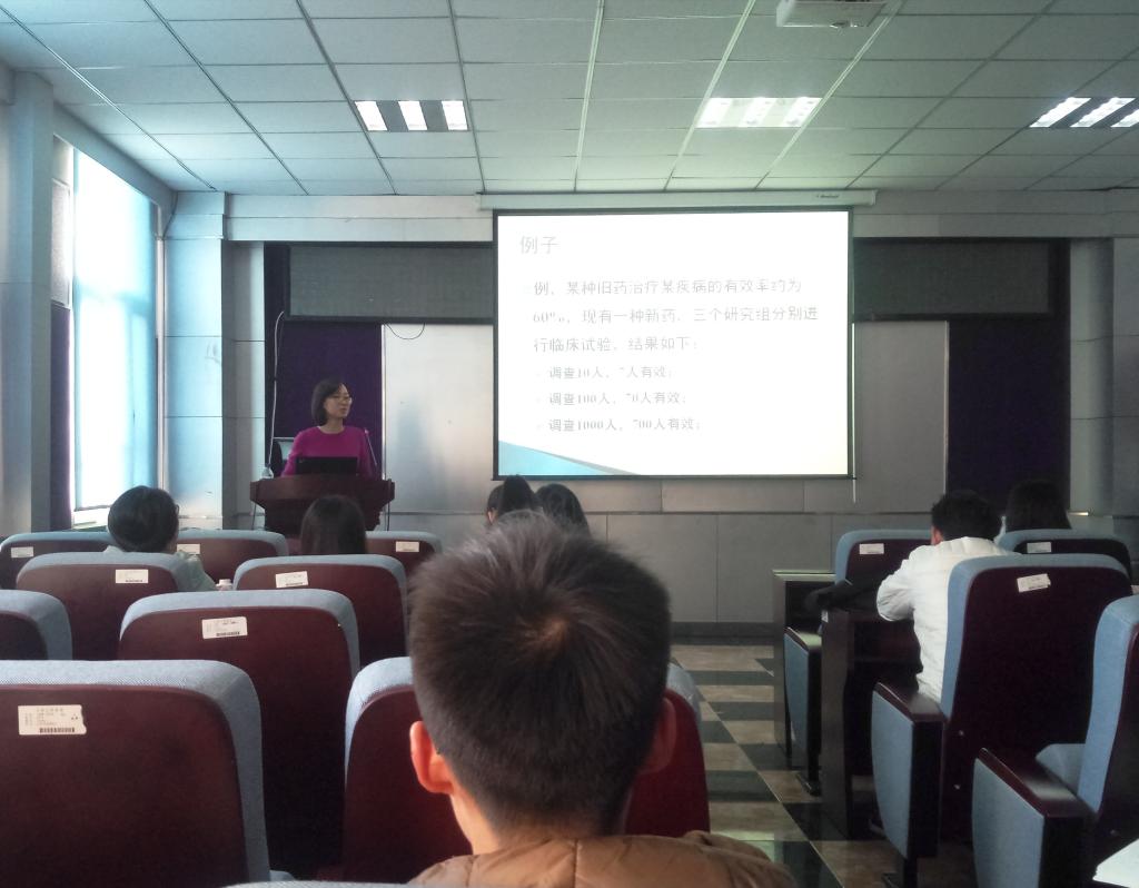 11月19日上午,由太阳成集团tyc9728员工会创新就业部组织策划举办的“梦想缔造者”创新就业大讲堂第三次开讲。太阳成集团tyc9728流行病与卫生统计学教研室金丽娜老师主讲的老员工创新实验沙龙第三期“概率统计与医学”讲座,在新民校区公司三楼报告厅如期举行。讲座内容以概率统计在医学方面中的应用为主,并辅以之前结项的大创项目实例以进行详细的介绍讲解。