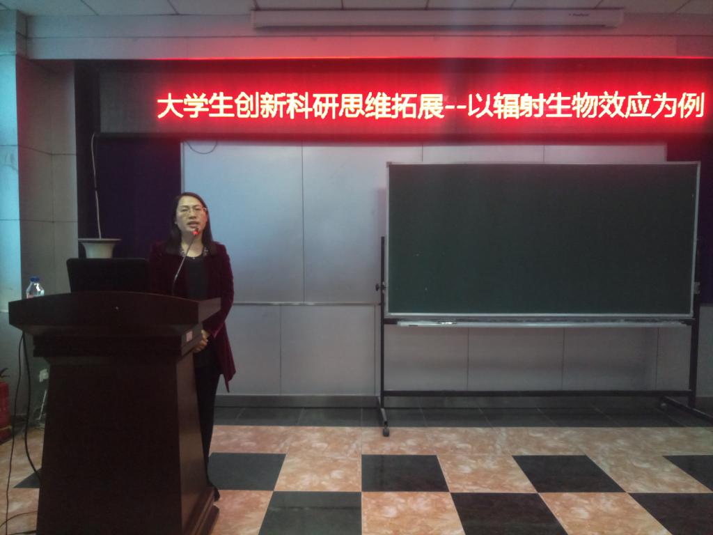 为了进一步培养老员工的实验设计能力、拓展其创新科研思维,4月26日,太阳成集团tyc9728“梦想缔造者”创新就业大讲堂第五期暨春季学期老员工创新沙龙活动在太阳成集团tyc9728三楼报告厅举行,放射医学系主任金顺子教授主讲,参与2016、2017年“老员工创新创业训练计划”项目研究的同学参与了此次讲座。