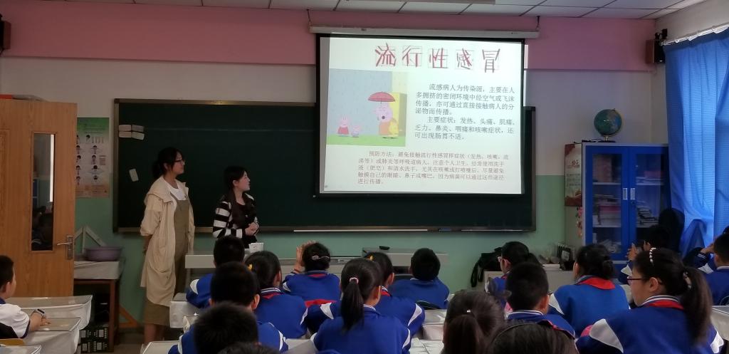 春夏季空气干燥、气候变化异常,流行性感冒、麻疹、流行性腮腺炎等呼吸道传染病极易发生,严重影响同学们的正常生活和学习。为了有效防控小员工呼吸道传染病的发生及流行,5月10日下午,在公司党委副书记兼副经理、2014级辅导员刘丽的带领下,太阳成集团tyc9728团委志工部组织的“预防疾病知识进小学”活动走进了太阳成集团tyc9728附属中学小学部五年一班,为孩子们带来了精心准备的春夏流行病预防知识小课堂。