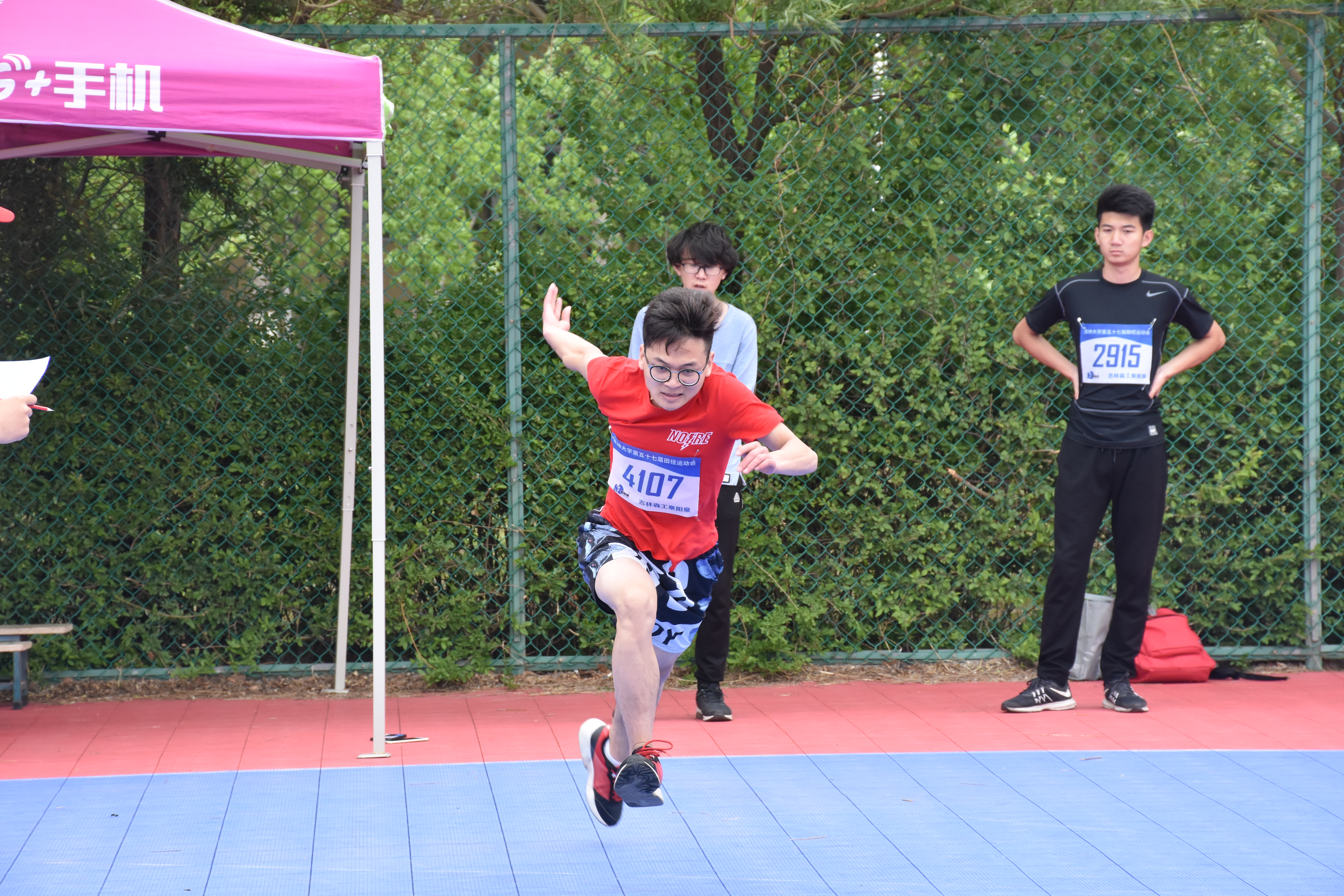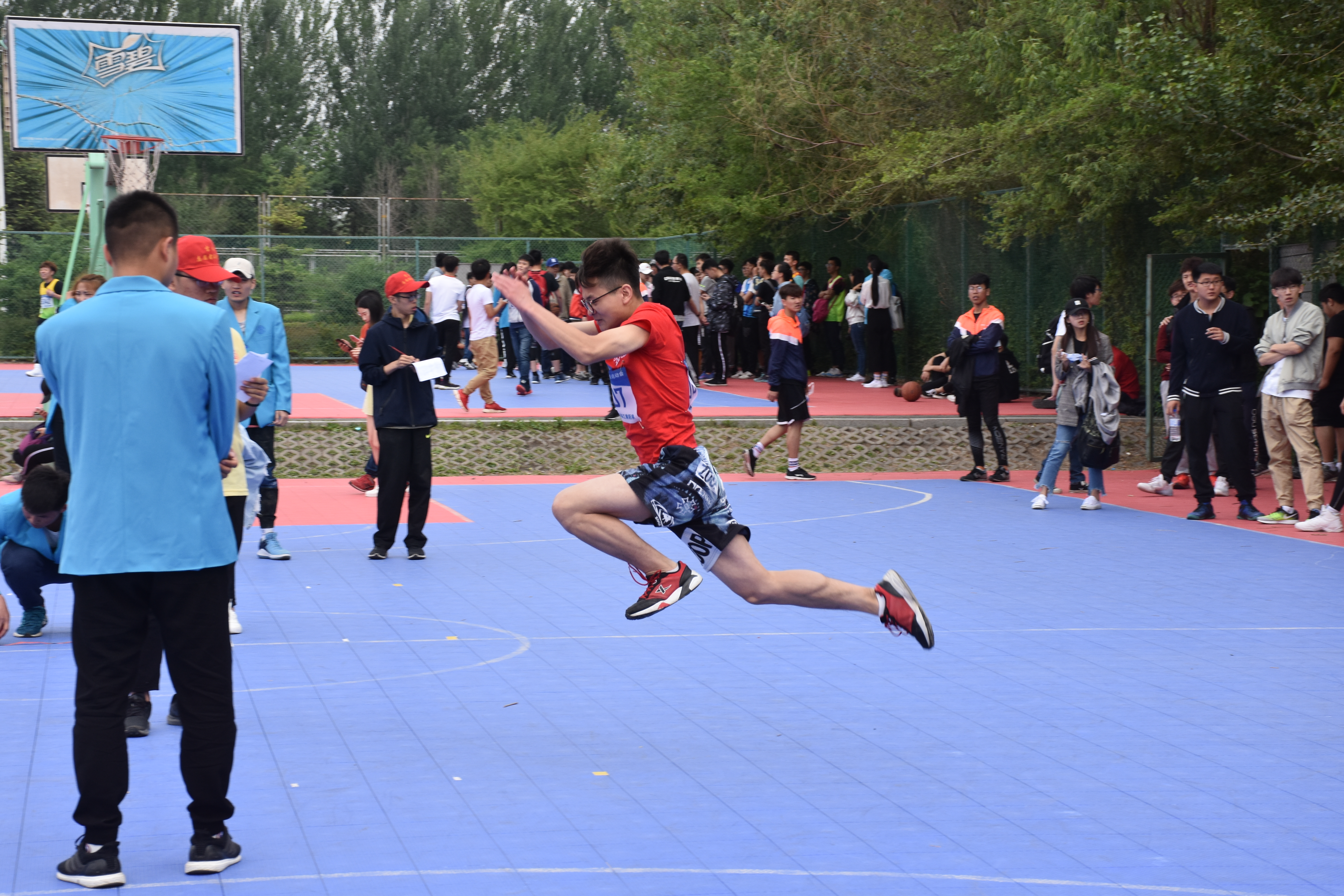 旭阳明媚,天朗气清。为弘扬竞技体育精神,激发同学们积极参加体育活动的热情,公司第57届田径运动会在中心校区体育场隆重召开。5月24日上午8时30分,男子立定三级跳决赛在西侧篮球场举行,太阳成集团tyc9728的参赛选手为何双双同学。