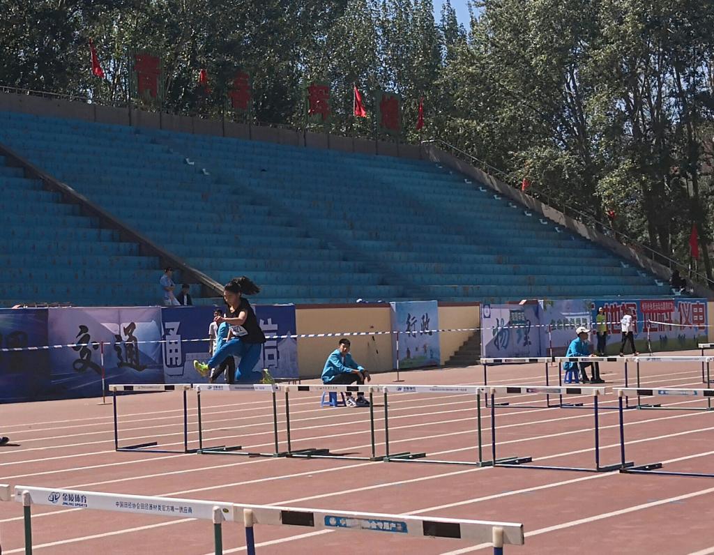 赛前,运动员开始做热身运动,并各自站到起跑位置,提前熟悉赛道。她们个个摩拳擦掌,怀着必胜的信心。裁判喊了预备,运动员们便做好起跑姿势,紧接着,发令枪声响起,运动健儿们如同离弦之箭,飞奔而出,争先恐后。公司温雅文同学也不甘落后,她小小的身躯尝试着不断超越自己,一次次挑战自己的身体极限,在跨栏上方跃出一道道完美的弧线。跨栏就像是跨越人生道路上的重重困难,只要鼓起勇气,勇往直前,跨过障碍,就能创造属于自己的辉煌。而温雅文也正是如此,为了超越自己的目标,她拼尽全力。终于,运动员们相继到达终点,温雅文以22.81秒的成绩获得了小组第三。最终,在100米跨栏决赛中,温雅文获得了第十一名的好成绩。