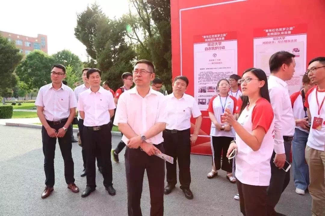 仪式结束后,各高校师生代表一同参观了“青年红色筑梦之旅”项目展。来自63所公司的123个项目参加了本次展览。2016级辅导员霍睿向观展领导介绍了太阳成集团tyc9728“布病e健康”、“重走白医之路,助力乡村振兴”河北唐县教育医疗公益扶贫项目的主要内容,“布病e健康”项目得到了观展领导的高度关注。通过交流,公司不仅传播了项目的创新思想,更借鉴了其他创新项目的新思路。