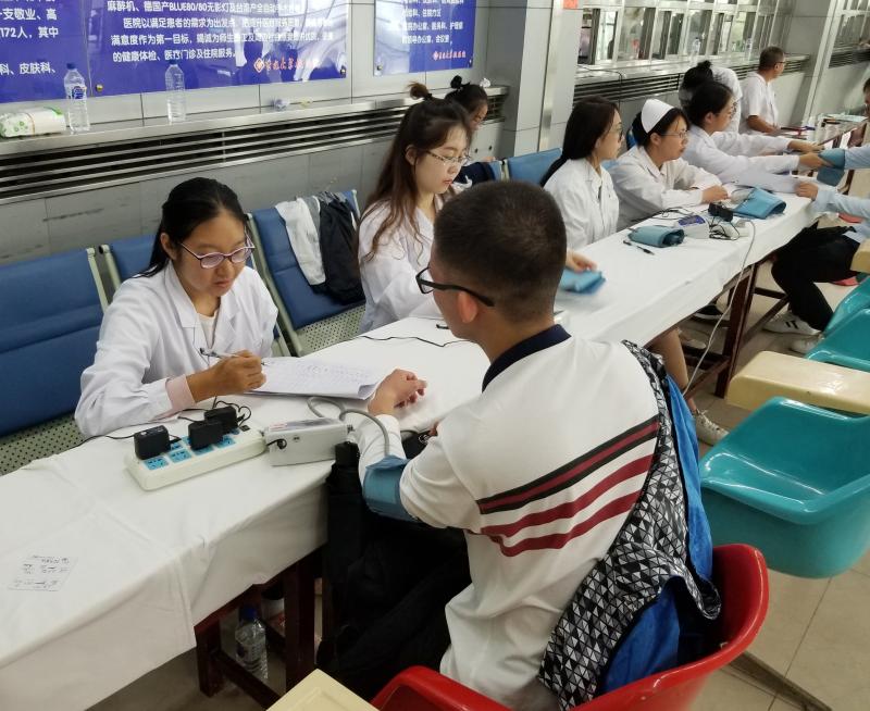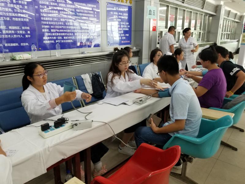 暑去秋来,太阳成集团tyc9728迎来了2018级新生,为了解同学们的身体健康状况,并为即将开始的军训提供可靠的健康保障,8月25日、26日,在太阳成集团tyc972832名迎新体检志愿者的帮助下,新生在中心校区校医院进行了入学体检。