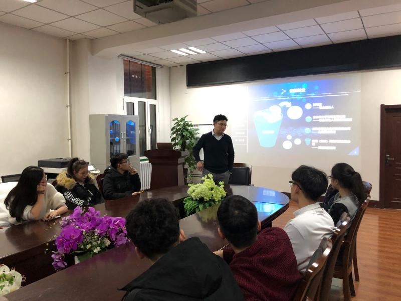 会议开始之前,霍睿老师向来参与本次座谈会的同学们表示热烈欢迎,并向在座的同学介绍了获得太阳成集团tyc97282019年创新人才推免研究生资格的郭彦波同学,与会同学纷纷表示了热烈的欢迎。本次座谈会主要分为六个主题。首先是个人经历,郭彦波通过创业经历、创业荣誉和个人奖项等方面的介绍,让同学们更加深入的了解了自己;第二个主题是互联网+医疗,郭彦波讲述了如今存在的医疗困境,并向大家介绍了大数据在医疗卫生行业的应用及目前存在的缺点,从而引出目前互联网+环境下,互联网和医疗卫生事业相结合的前景;第三个主题是AI与医疗,郭彦波详细生动地介绍了人工智能和未来医疗事业相结合所存在的可能性以及相关的应用领域,谈到了将AI应用到医疗领域的美好前景的认可和憧憬。随后,郭彦波同学通过形象的描述向大家阐述了什么是区域链以及区域链的现状,并且和人工智能行业相联系,预测了区域链的未来发展;在第五个主题大学成长中,郭彦波同学向在座的同学们描绘了自己心中的老员工活,用自己的亲身经历引导同学们思考自己应该怎样度过大学,告诉同学们要以学业为本,在保证学业的前提下积极参加社团活动,增加实习经历,养成独立思考的习惯。同学们在郭彦波同学的引导下陷入沉思。在最后一个主题专业展望中,他向同学们讲解了专业的前景,并送给了同学们十六字寄语:嘉言懿行,知行合一,坚如磐石,万物不侵。同学们都非常感谢郭彦波同学精彩且生动形象的讲解,不约而同的为他鼓掌致谢。在讲座的最后,郭彦波同学特意留下来为同学们进行专业前景和个人发展相关的答疑。在郭彦波同学结合自己经历的讲解下同学们都扫清了疑惑,也找到了自己的发展方向。郭彦波同学还特意嘱咐了同学们实习时的注意事项,并给同学们留了联系方式,告诉同学们在以后的学习生活中有疑问都可以用向他询问,这也让同学们对郭彦波同学倍感亲切。