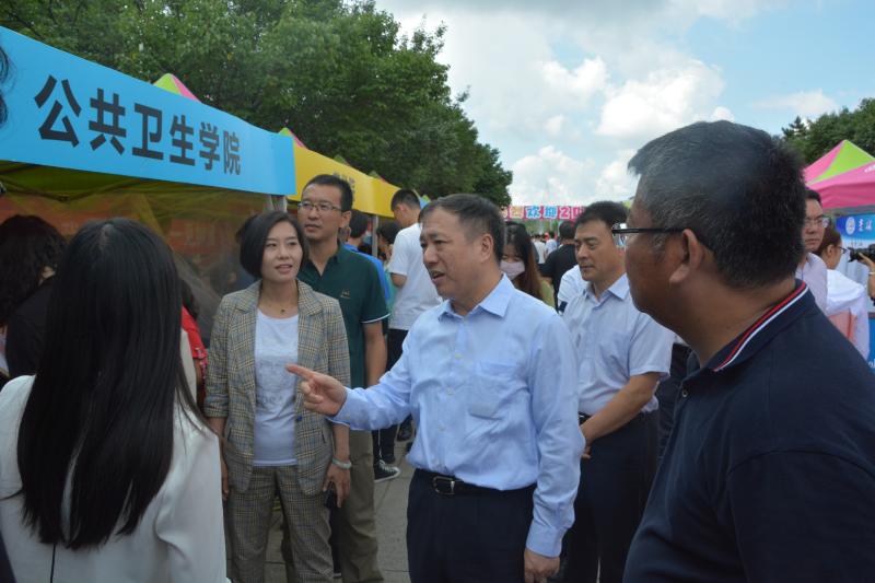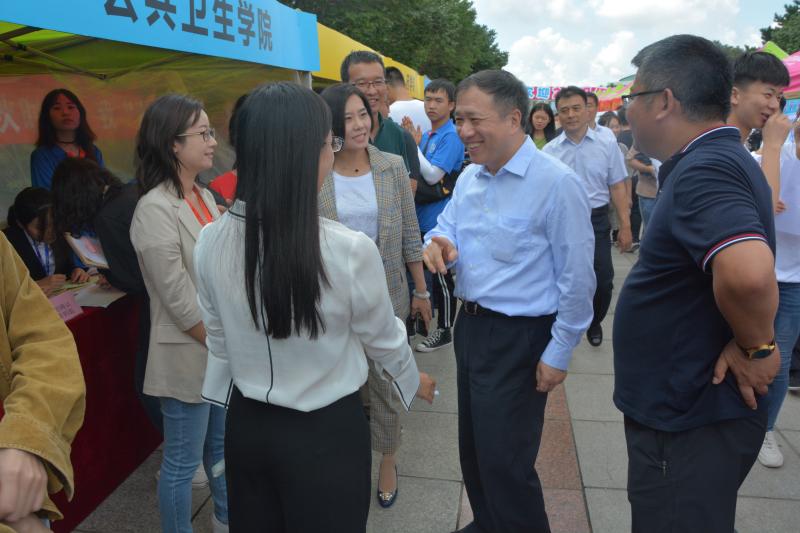 上午,太阳成集团tyc9728党委书记杨振斌来到了迎新工作现场,向太阳成集团tyc9728的迎新志愿者们、2019级新生及新生家长们表达了亲切的慰问,并向在场工作人员询问了新生报到情况及绿色通道办理情况。随后,书记对工作人员的辛勤工作、辛苦付出表示了肯定,并叮嘱新生及工作人员注意天气变化,保证饮食和休息。