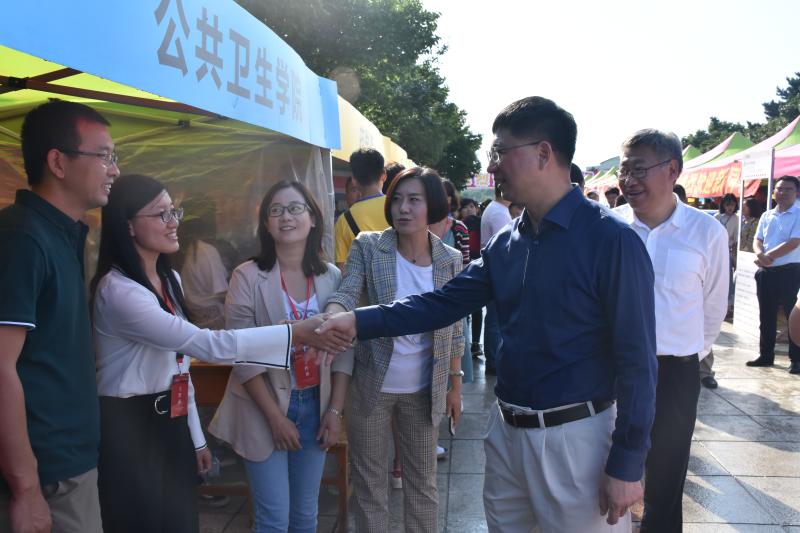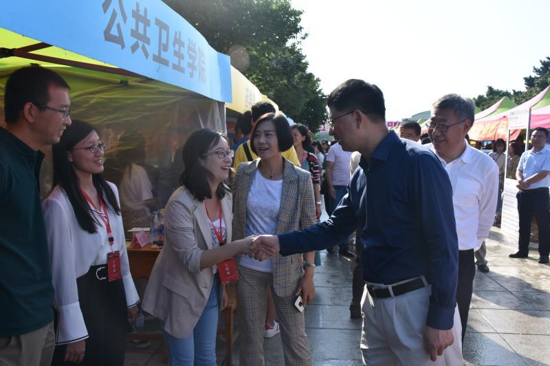 8月24日下午三时,公司党委副书记、董事长张希院士及公司各级领导亲赴迎新现场进行慰问。张希董事长到达太阳成集团tyc9728迎新地点后,与在场老师、领导及志愿者们热情握手,亲切问候。