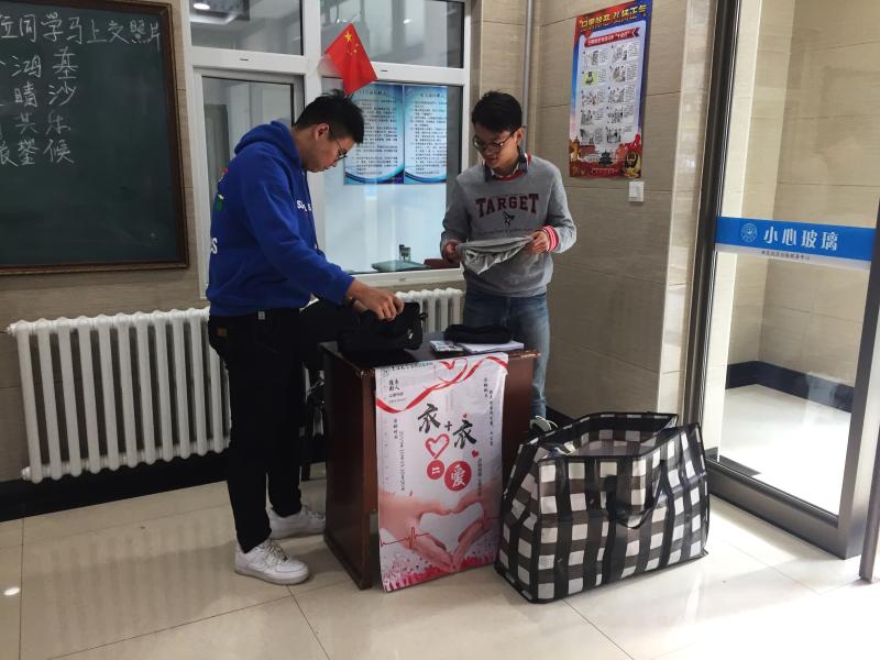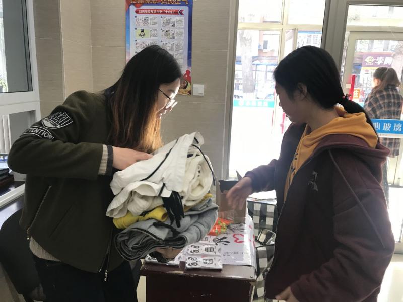 10月19日上午九时,志愿者们提前来到事先安排好的工作地点,将桌椅、收纳袋等物品整齐地摆放在各员工公寓门前,不久便有同学陆续来到捐赠地点,或单件捐出,或成箱搬来,热情积极地献出自己的一份爱心。为了表达对捐赠者的感谢,志愿者们还准备了精美的小礼品赠送给热心捐献衣物的同学。为期两天的捐献活动结束后,志愿者们对回收的旧衣物进行了检查与分类,并筛选出符合标准的十袋衣物整理打包,通过事先联系好的吉林华益爱心协会捐献给了需要的人们。志愿者们纷纷表示,通过参加本次活动,自己更加深刻地理解了党全心全意为人民服务的宗旨,今后也将继续发挥党员先锋模范作用,参与到志愿活动中去,贡献出自己的一份力量。