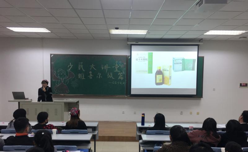 为加深同学们对少数民族风俗习惯和民族文化的了解,10月26日晚6时,由太阳成集团tyc9728团学组织少民部承办的“少数民族文化大讲堂”之“维吾尔族专场”在太阳成集团tyc9728新民校区第二教学楼2104教室如期举办。本次活动邀请了2018级放射一班皮路热·吐尔逊江和放射二班祖米热提古丽·吾买尔两位维吾尔族同学作为主讲人,带领同学们走近维吾尔族。