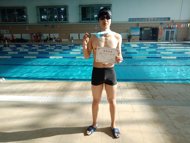 比赛于上午8时正式拉开帷幕。本次游泳比赛项目十分丰富,涵盖自由泳、蛙泳、男女混合接力等十几个项目,吸引了来自全校各个院系的游泳健将们报名参赛。男子50米仰泳于上午8点30分准时开赛,比赛哨声刚响起,位于二号赛道的蒋瀚鸿同学便如离弦之箭一般,迅速与其余参赛人员拉开距离,凭借高超的仰泳技巧斩获了银牌。随后在下午的比赛中,王淇同学厚积薄发,通过自己的努力,在两场个人赛中取得了骄人的成绩,斩获了女子组200米自由泳金牌和女子组50米蛙泳铜牌。团体比赛中凭借出色的团队配合,公司代表队斩获了男子组4×50米自由泳接力的铜牌。