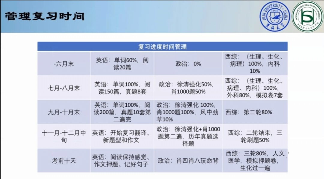 会议正式开始,五位同学依次为同学们分享心得,答疑解惑。针对同学们关心的热门问题,他们给出了自己在复习备战中的切身体会。首先,他们分享了各考试科目的复习要点与方法策略:政治方面,选一个适合自己的授课老师,做到认准、相信老师,切记不可朝三暮四;在英语方面,整个复习备战期间每日都要坚持单词背诵、听力训练和练习各种题型;而专业课的复习重点在于通过第一轮、第二轮的自我概况和总结,快速建立起知识点的网络,找出要点与难点,再经过后面数轮的反复背诵,不断强化记忆,同时根据自身需要,积累一定的题量。关于复习计划的制定,各位同学的意见大同小异,都强调要早做准备,为各科目拟定不同的时间表和进度节点。更重要的是,要有能够把计划坚决执行的魄力和决心,停留在纸面的计划终究只是计划而已,唯有付诸行动才有意义。