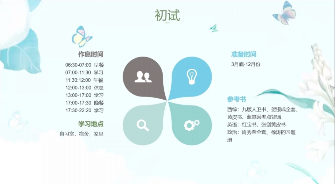 本次会议为各位有志于考研的同学分享了宝贵的经验,为他们指明了方向,让他们对未来的目的地有了更清楚、更理性的认识。希望同学们能少走弯路,云帆高挂,一路顺风,驶向理想的彼岸。