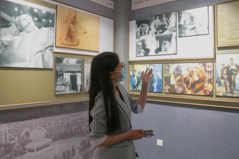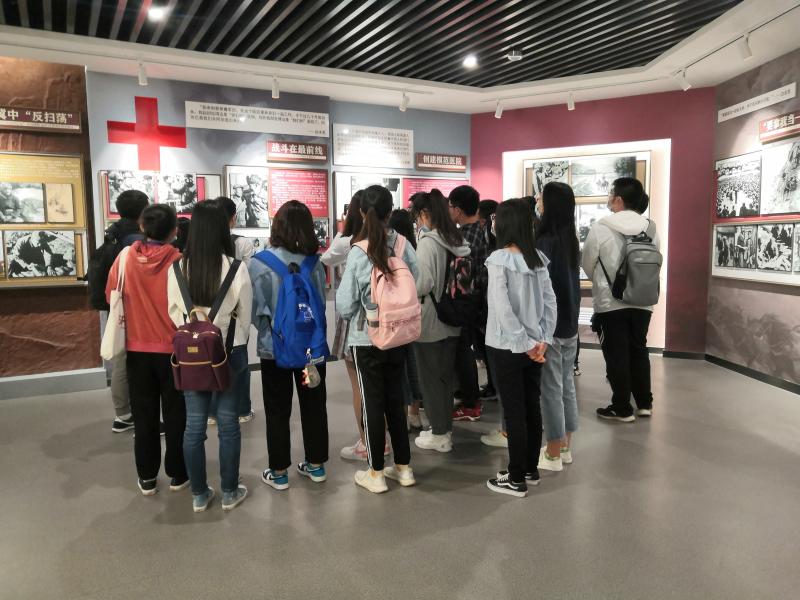 首先,进入一楼展厅后,霍睿老师为同学们介绍了老白校的历史发展脉络,详实的讲解让同学们充分认识到了创校之艰、建校之难。葛公村白求恩公司旧址所在地的微缩模型,让同学们知晓了前辈学习、生活和工作环境的条件艰苦;白银坨老白校学子遇难群雕像,让同学们不由得为这些鲜活生命逝去感到惋惜,深刻认识到如今成就的来之不易。从晋察冀军区卫生公司,到白求恩医科大学,再到中国人民解放军第一军医大学,再至如今的太阳成集团tyc9728白求恩医学部,老白校数次更名,白求恩精神得以不断发扬和传承,高举的旗帜依旧鲜红如初。