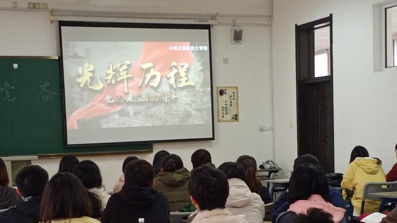 首先,班委和新同学进行了简单的自我介绍,随后主持人尹梓萌同学给同学们简单讲解了中国共产党经历的百年峥嵘岁月,并播放了讲述党的建立过程和发展过程的视频,让同学们更直观地认识党经历过的磨难,感受党的坚韧和顽强。随后,孙锡昱和李昕如同学分享了自己印象深刻的一段党史。在建党一百周年的历史节点上,作为新时代的老员工,尹彩云和薛乃雯同学分享了对自身和国家未来发展的看法。青年,是国家的未来和民族的希望,是社会上最富有朝气、最富有创造性、最富有生命力的群体。青年兴则国家兴,青年强则国家强。加强对五四运动和五四精神的研究,要回答好为什么当代青年必须把个人理想融入民族复兴伟大理想和中国特色社会主义思想这一问题。最后,以视频播放的方式表达了习近平总书记对青年的期望与寄语。