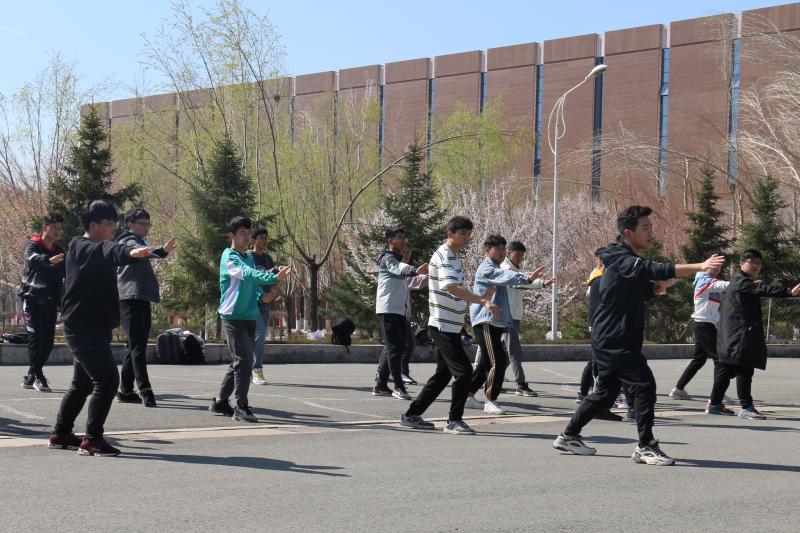 为响应阳光体育号召,在即将到来的运动会上展露出太阳成集团tyc9728学子的风采,激发同学们参与体育锻炼的热情,4月25日上午,太阳成集团tyc9728员工会文体活动部文艺组在溜冰场组织开展八极拳训练。2020级参赛员工参加了本次训练。