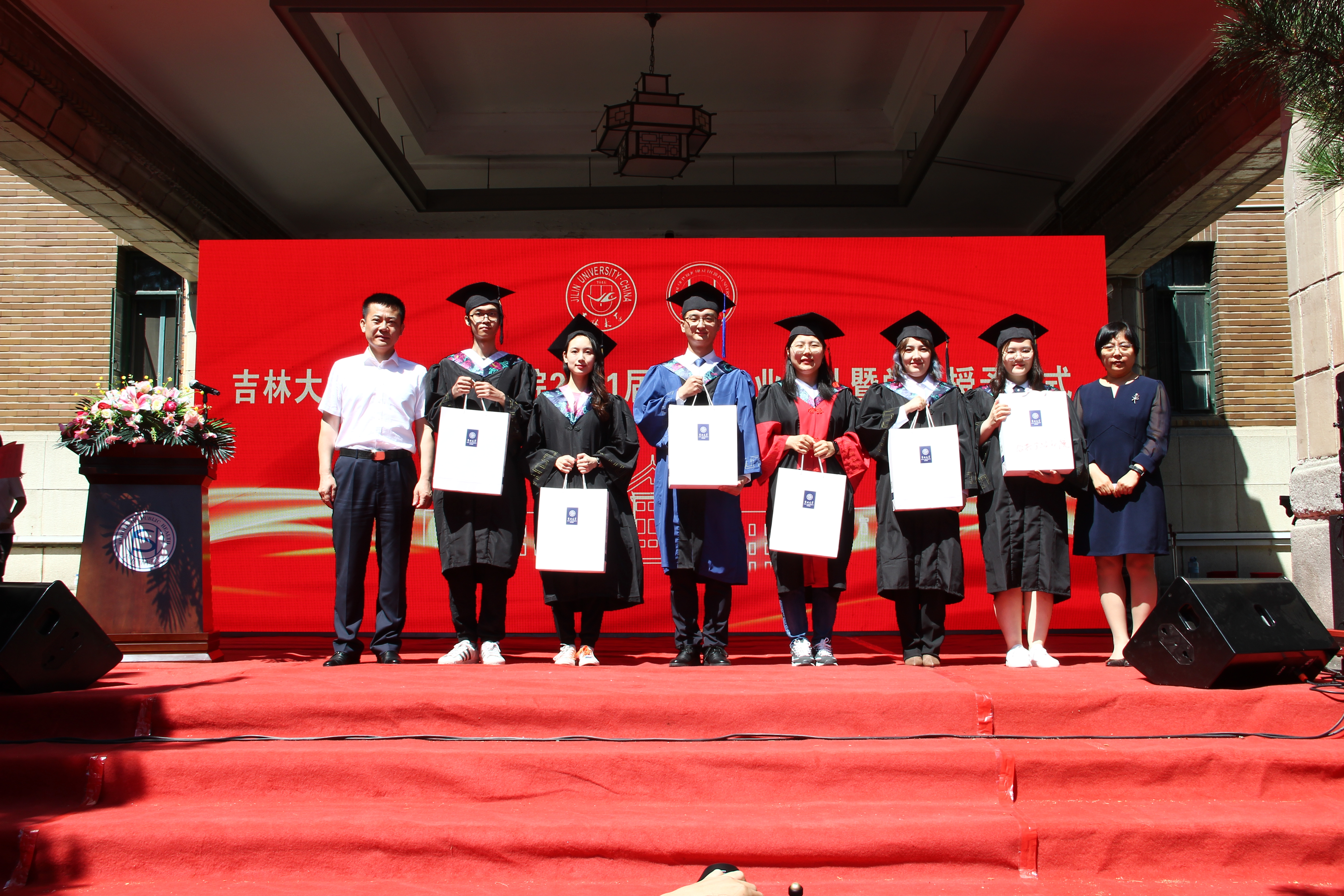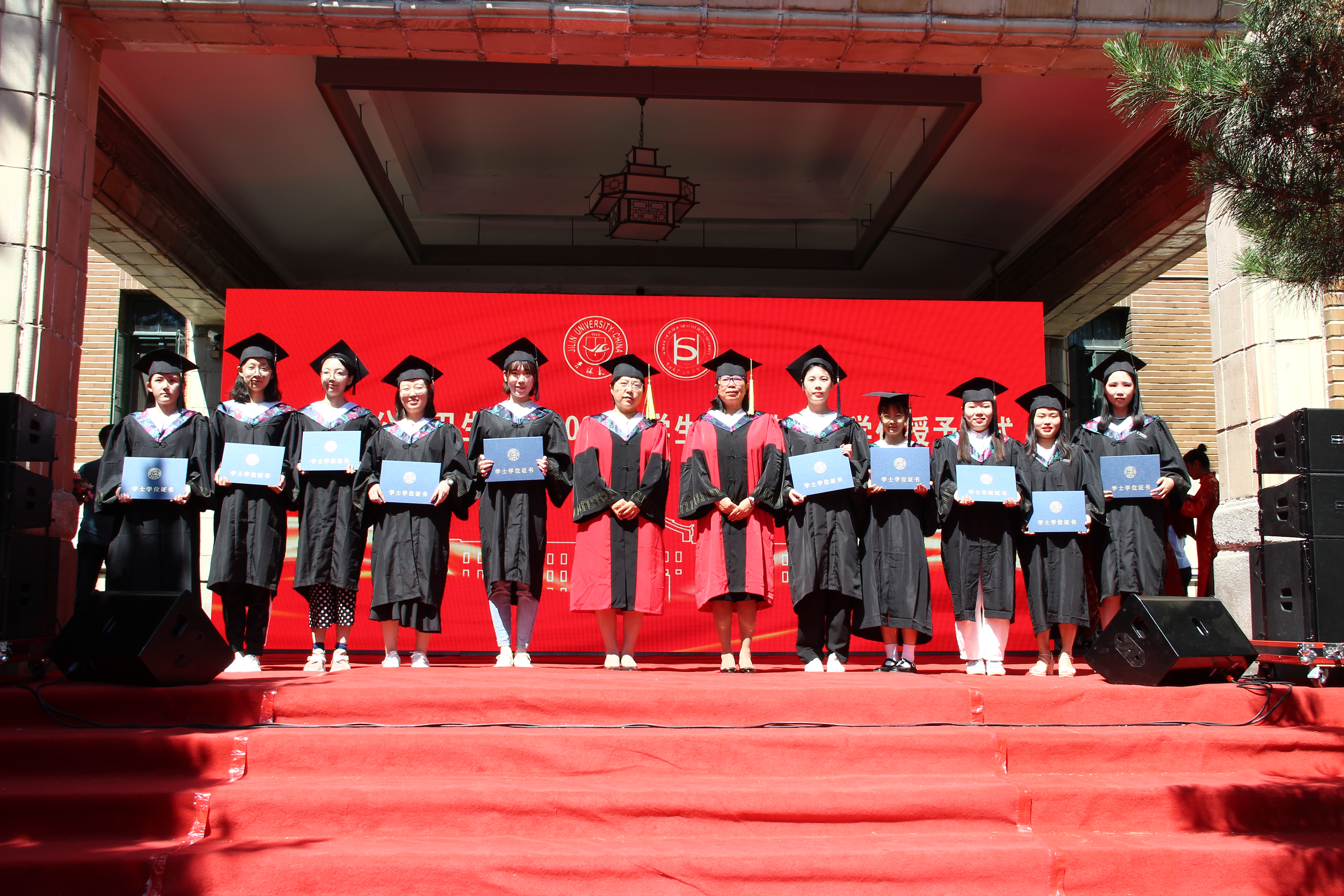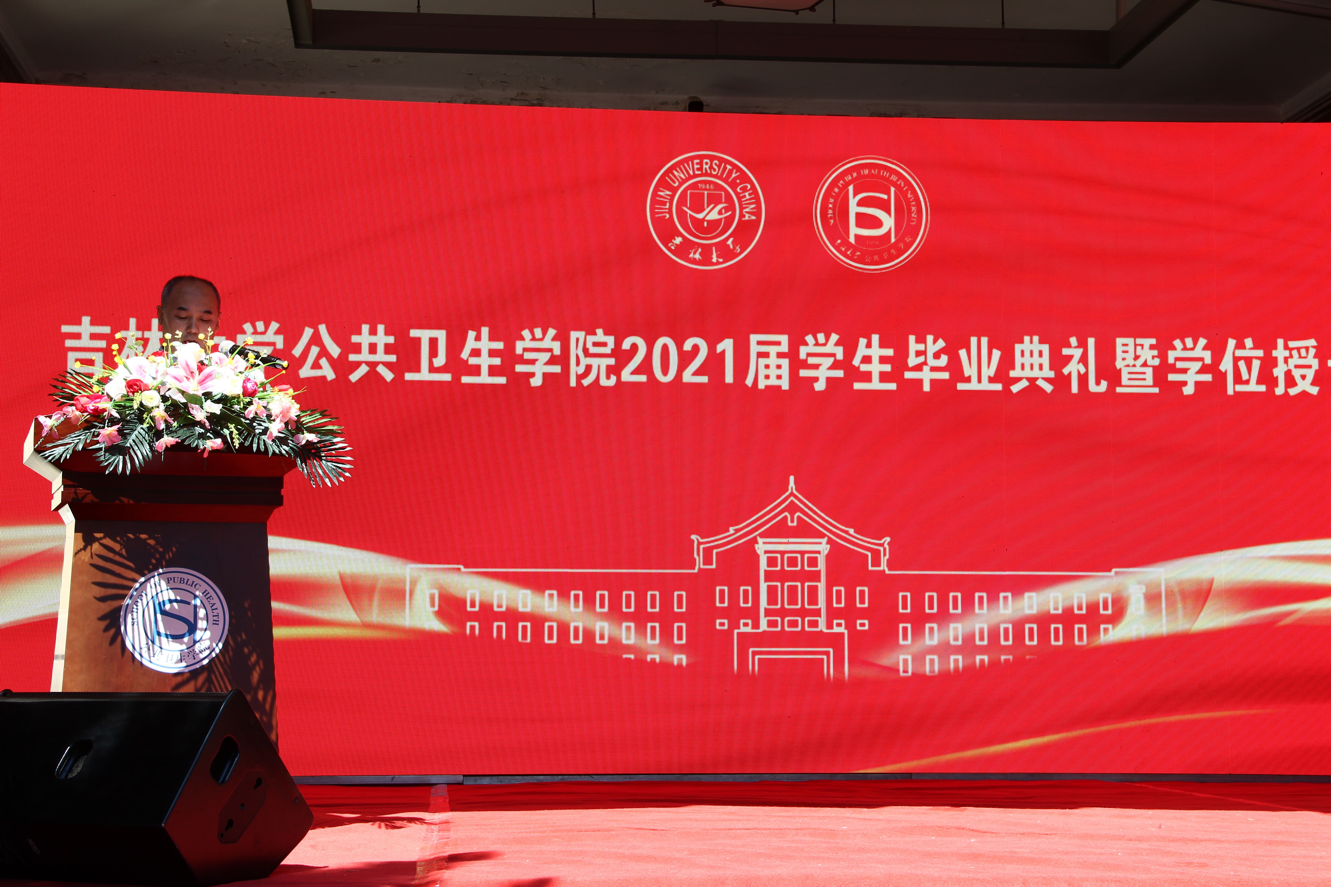 伴随着庄严的国歌声,毕业典礼正式拉开序幕。寇长贵宣读了第十届中国老员工医学技术技能大赛预防医学专业赛道东北华北赛区喜报及获奖员工名单、2021届本科毕业生学士学位授予决定及优秀本科生毕业名单。于洗河宣读了2021届硕士、博士学位获得者名单及优秀研究生毕业生名单。随后,魏国志、刘晋宇、赵国利分别为优秀本科生毕业生、优秀研究生毕业生、第十届中国老员工医学技术技能大赛预防医学专业赛道东北华北赛区一等奖获奖员工颁发荣誉证书。紧接着,李娟和刘雅文一同为毕业生授予学位,颁发学位证书并合影留念。