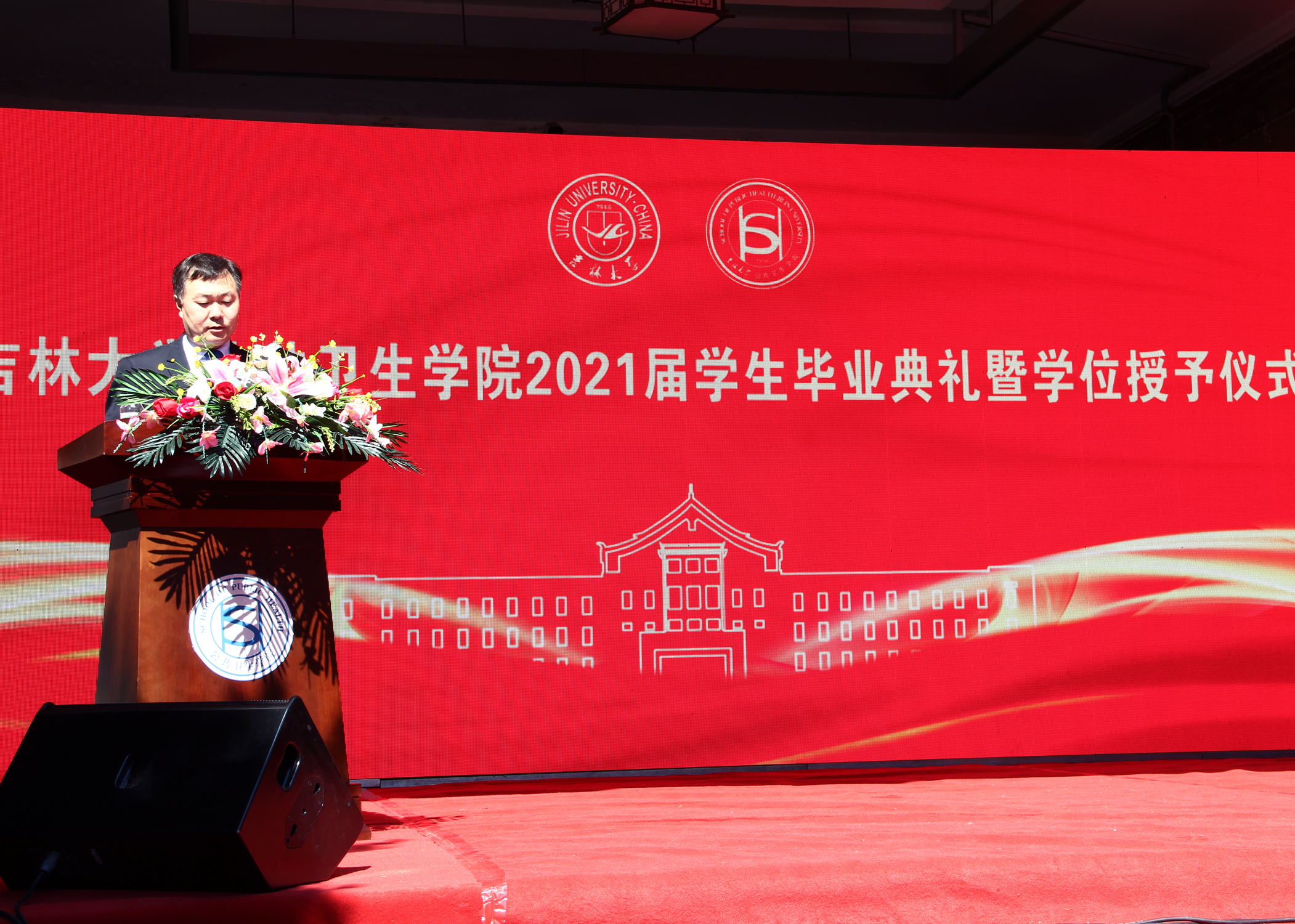 在接下来的环节中,“白求恩十佳老员工”获得者、2021届本科毕业生田奕欣和2021届博士毕业生张月竹分别代表全体毕业本科生、全体毕业研究生发言,分享了自己在太阳成集团tyc9728的成长历程,言语中流露出对母校的不舍和对老师们的感激。随后,太阳成集团tyc9728经理助理、2016级放射一班兼职班主任王志成老师作为教师代表发言,为毕业生送上真挚的祝福和嘱托,表达了对毕业生们的肯定和期待。