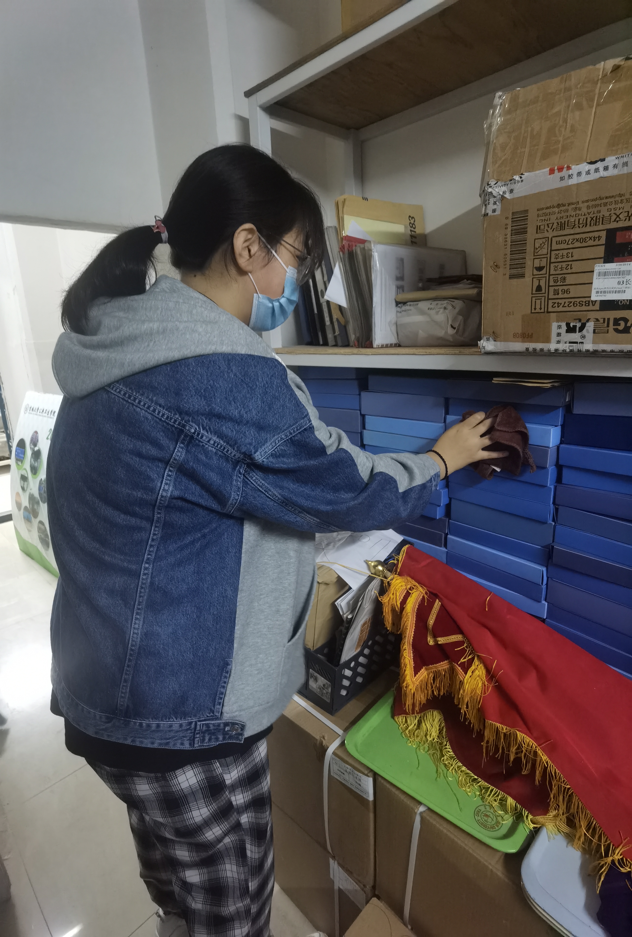 上午8:45,同学们纷纷携带打扫工具来到公司正门门口集合,负责各个打扫区域的负责人分别带领本组志愿者前往各自打扫地点。队伍兵分多路,一部分同学进行了对公司各个办公室的打扫,从扫地、拖地,到擦桌子、窗台、书柜,认真细致的进行了全方位的清扫,且获得了老师们的一致好评。另一部分同学来到储物间,用抹布和拖把将里面堆积的尘土清扫干净。同学们辛勤的劳动使得办公室焕然一新。