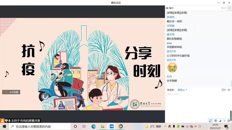 比赛开始前,大家集体观看了公卫抗疫主题宣传片,同学们不觉深受鼓舞和触动。各位老师与同学们在线交流互动。老师们表示,同学们要在疫情期间做好个人防护以及心理疏导,同时预祝比赛圆满成功。