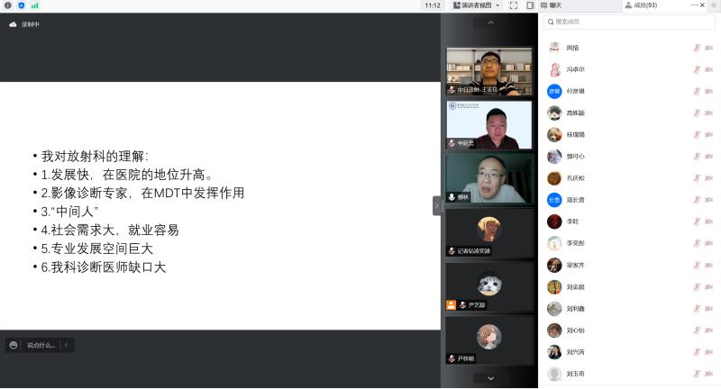 接下来,王教授作为资深的放射医疗工作者,分享了同学们比较关心的薪酬和工作压力等问题,结合所在科室的经历和自身的见解为同学们解开困惑,最后以放射专业读研的建议结束。