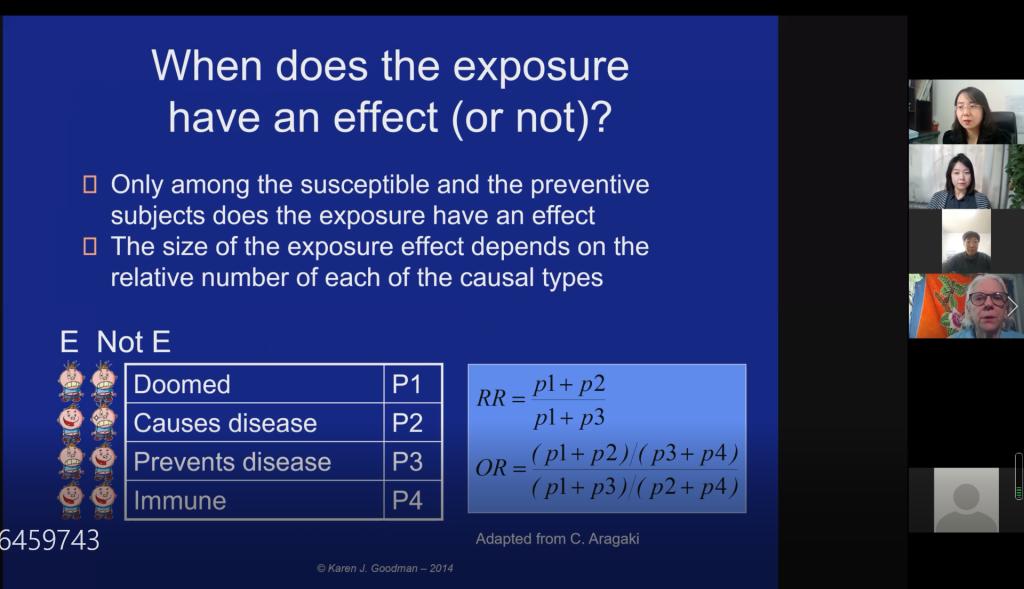 This lecture invited Karen J Goodman, a tenured professor at the University of Alberta, Canada. Professor Karen J Goodman taught the students the basic concepts of causal inference in epidemiological research and the basic methods of disease identification of causal relationship between risk factors. More than 40 senior undergraduate and graduate students attended the online lecture. This online lecture was hosted by Professor Li Hui of the Social Medicine Teaching and Research Office of our college, and invited Professor Ren Shuping of the Environmental Health Teaching and Research Office of our college, Professor Jin Lina of the Epidemiology Teaching and Research Office, and Associate Professor Feng Jia of the Medical Information Teaching and Research Office to stay in the class to ensure the smooth progress of the course.