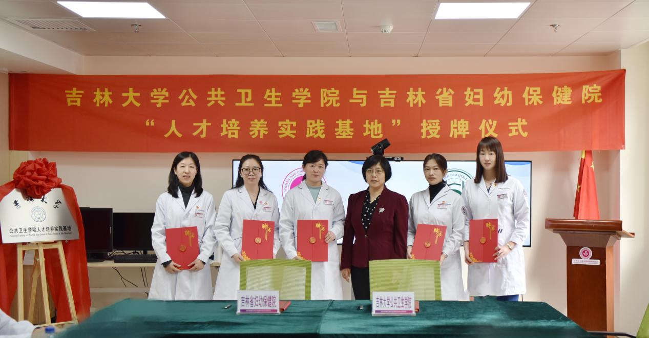 Subsequently, Liu Yawen, the dean of the School of Public Health, read out and issued an appointment letter for postgraduate cooperation mentors in the School of Public Health of Jilin University, and jointly signed a talent training practice base cooperation agreement with Dong Xiaobin, the dean of the Provincial Maternal and Child Health Hospital. Zhao Guoli, Secretary of the School of Public Health, and Shen Wensheng, Secretary of the Provincial Maternal and Child Health Hospital, unveiled the plaque for the base.